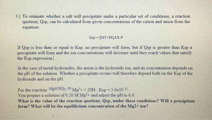 Solved 3 To Estimate Whether A Salt Will Precipitate Under Chegg Com