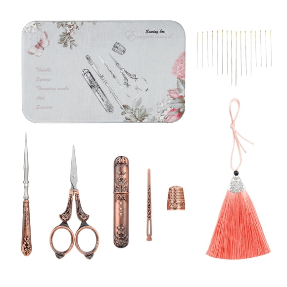 Amazon Com Freyamall European Antique Vintage Sewing Kit Scissors Metal Thimble Needle Case Diy Sewing Tools For Embroidery Cross Stitch Craft Accessories